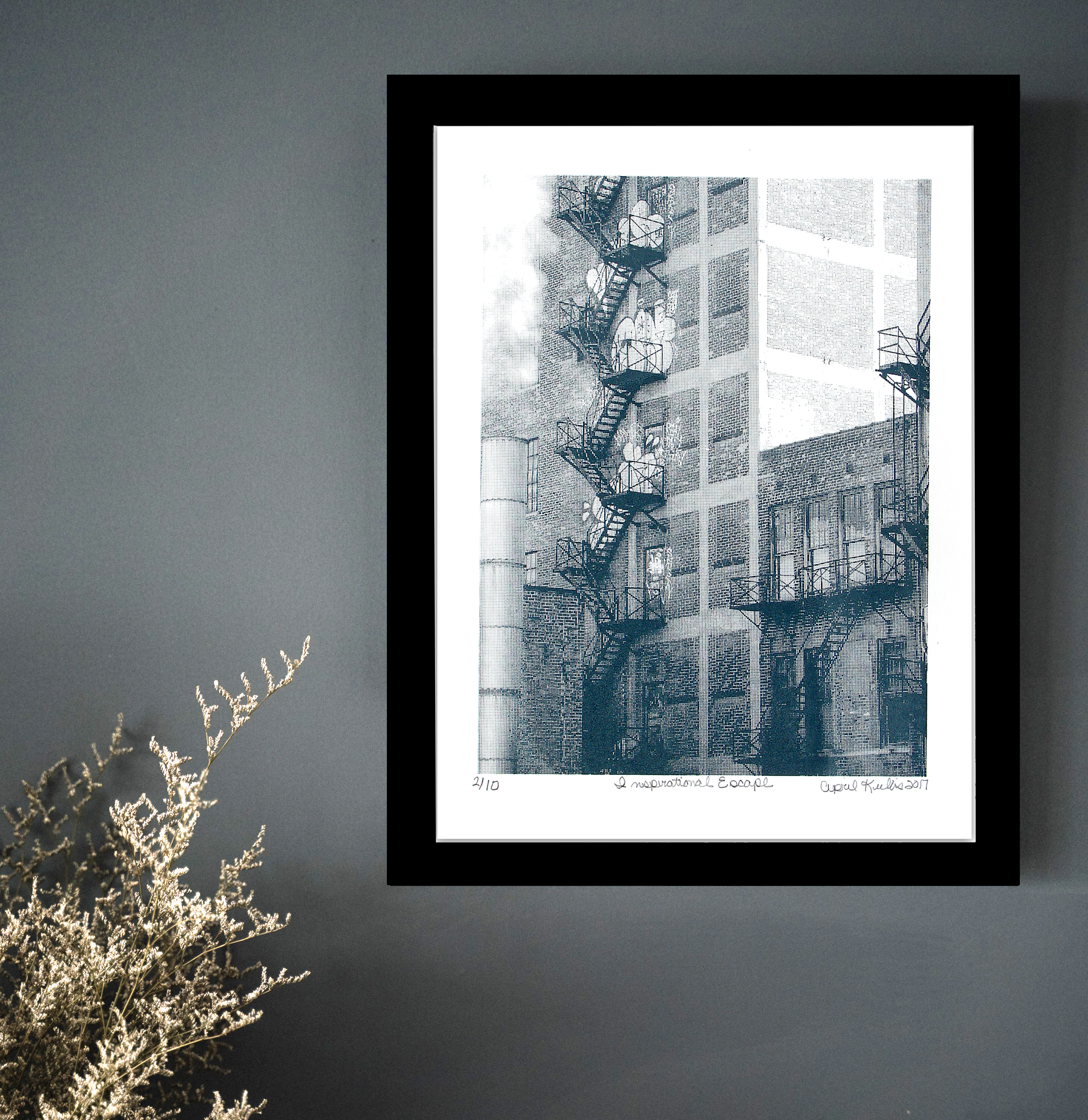 I have always been intrigued by fire escapes. Where they go, where they come from, how they make a connection to each space they pass by, and what that might mean to the occupants behind those walls. On a visit to Detroit I came across this fire escape and it inspired me. It was in an area of obvious urban decline yet its beauty was unmistakable. I snapped a picture and continued on. When I returned home I felt the need to make this into something that could be shared to inspire others as it did me.