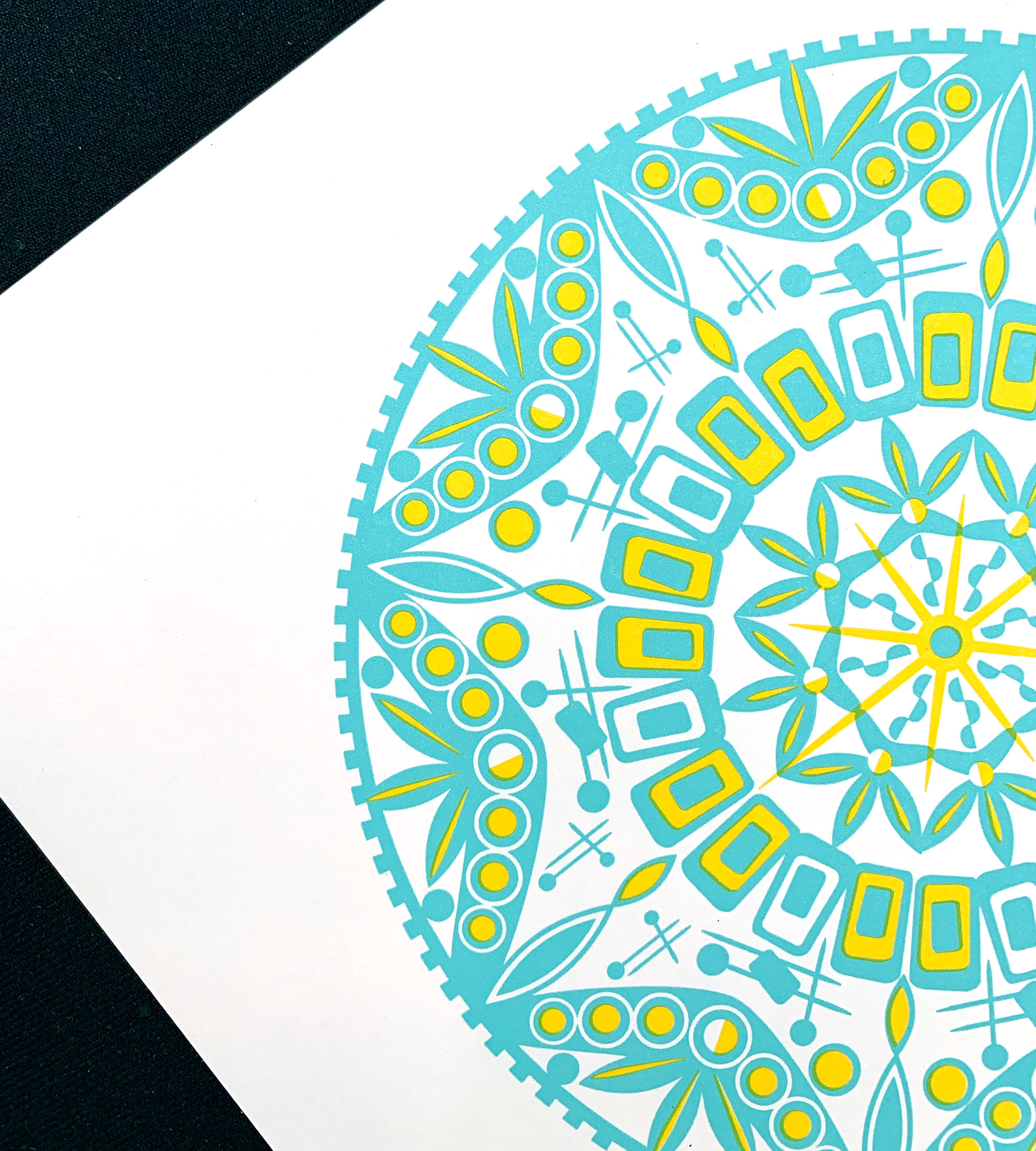 The creation of this mandala was an exercise of quiet meditation and introspection for me. In the process of designing it I experienced a calm space that allowed my mind to be still. It also expresses mid-century modern values I hold important. Values of clean lines and organic shapes, simplicity and functionality. Through this exercise I began to understand the importance of minimalism and sustainability in a broader context.
