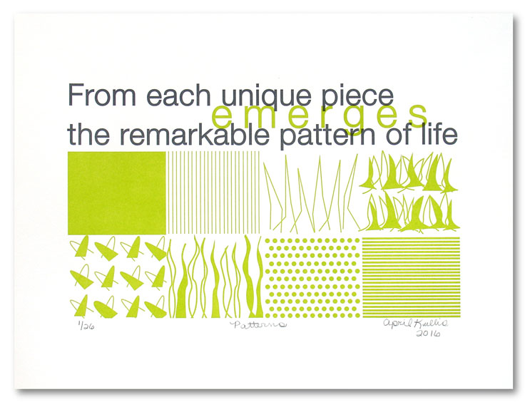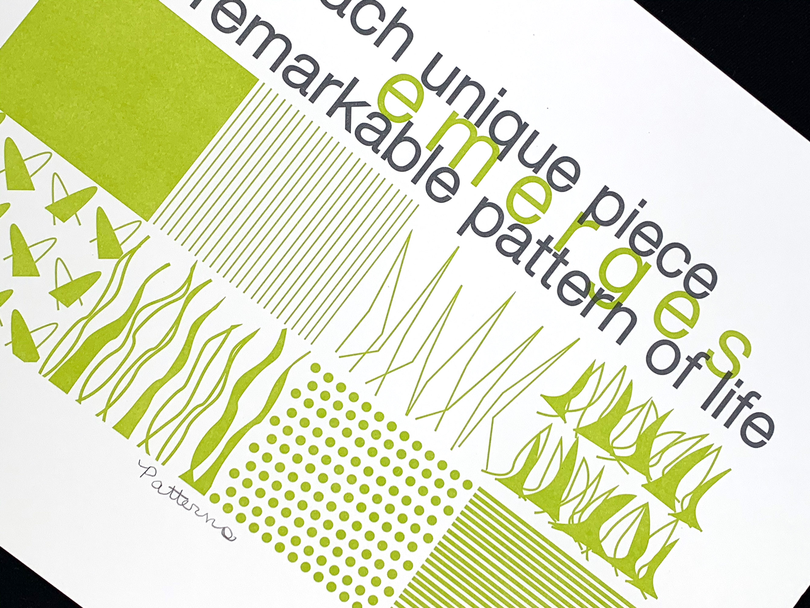 Inspired by a farmers garden viewed from the air and how that pattern relates to the world. Zoom out and you have a wonderful abstract pattern. Stand in the middle of the garden and you discover the worth of each individual plant and how different yet connected they are. Each single plant connected by the earth and dependent on the forces of nature. A perfect microcosm of life and all its complexities.