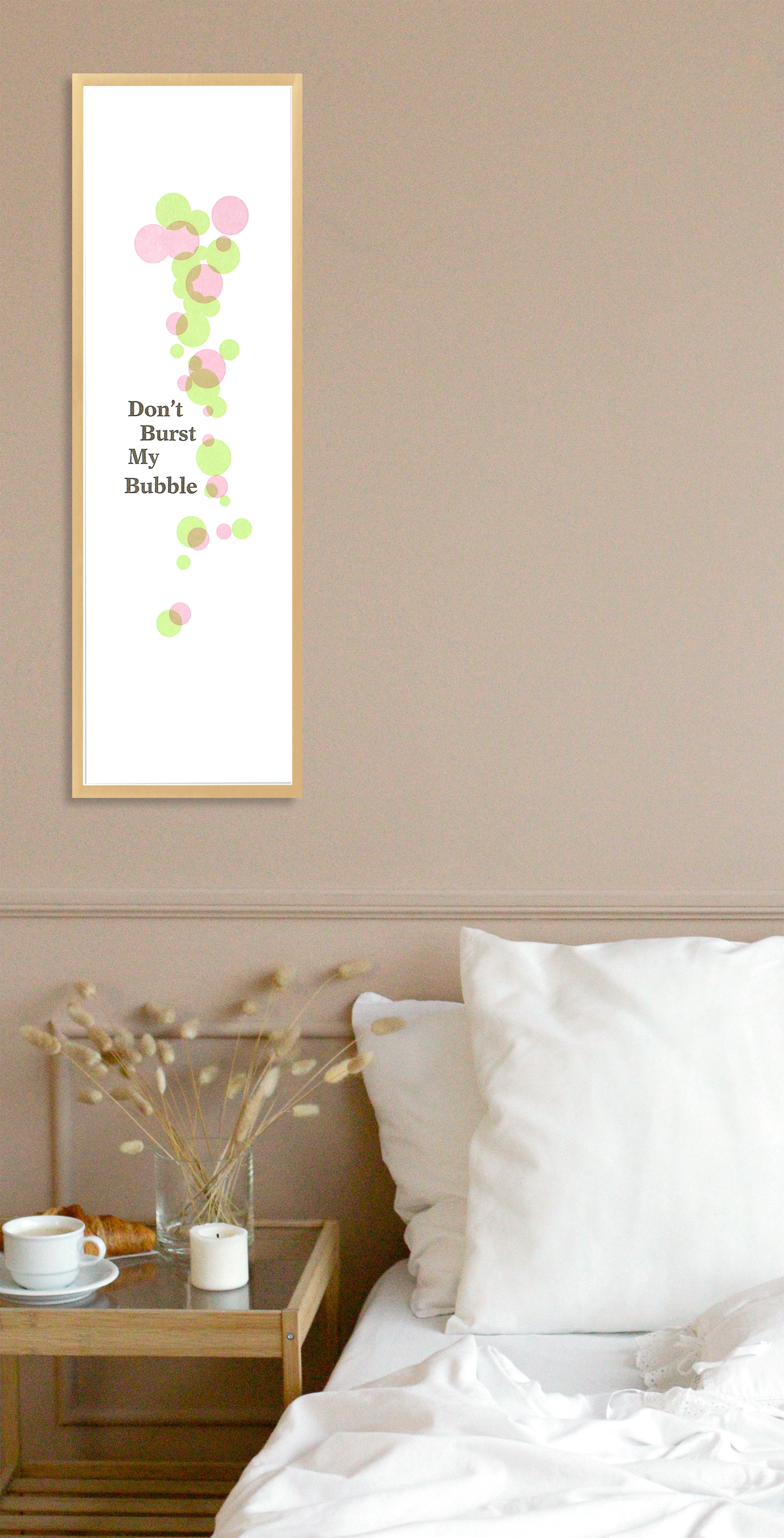 Bubbles! What could be more fun? Just the thought of them conjures up feelings of joy. Blowing bubbles with a child, a bubble bath, and bubble gum, all great fun! It’s a sad day when someone bursts your bubble. This print keeps those bubbles and the dreams that go with them alive.