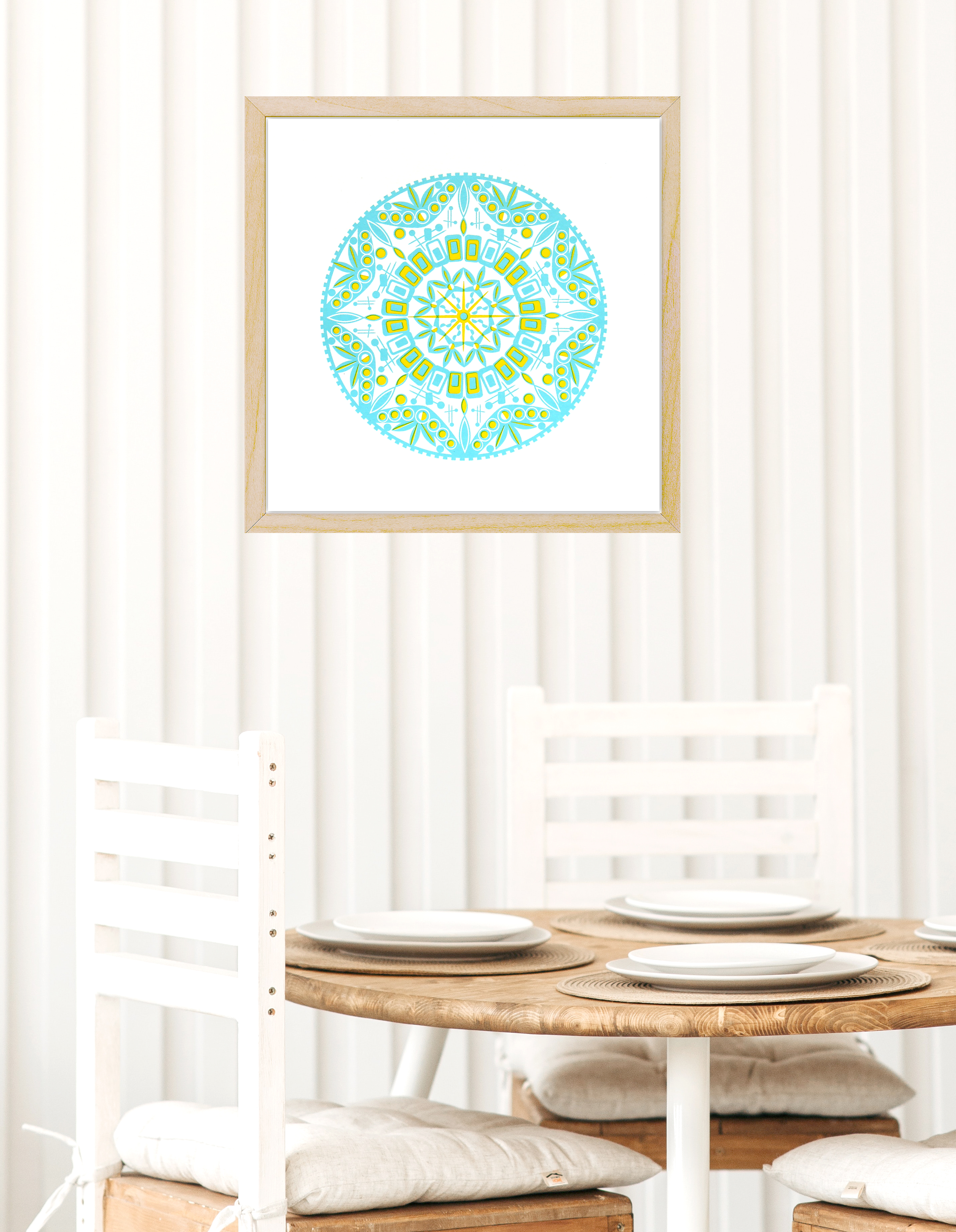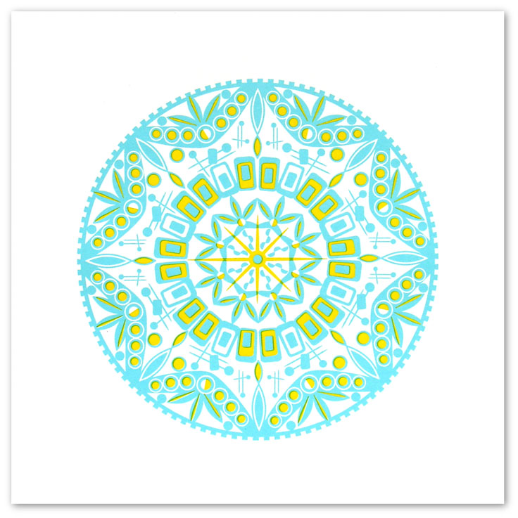 The creation of this mandala was an exercise of quiet meditation and introspection for me. In the process of designing it I experienced a calm space that allowed my mind to be still. It also expresses mid-century modern values I hold important. Values of clean lines and organic shapes, simplicity and functionality. Through this exercise I began to understand the importance of minimalism and sustainability in a broader context.